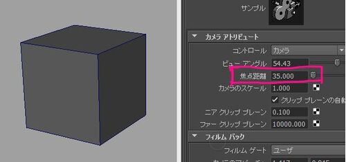 いつ役立つ機能かわかりませんが、紹介します。perspのカメラの場合、パースがついており、その調整を"焦点距離"で行ったりします。モデリングをする方はこれを"90"とかに調整をして作業するみたいです。比較するとこんな感じになります。 上に比べて下の方…